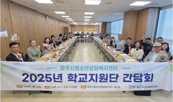 (재)파주시청소년재단 파주시청소년상담복지센터(센터장 장문희)는 9월 30일 오후 3시, 센터 내 백리향에서 관내 초·중·고 33개교 교장을 대상으로 '2025년 청소년안전망 학교지원단 간담회'를 개최했다.