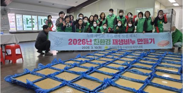 인천 미추홀구새마을부녀회(회장 강화옥)는 지난 10일 미추홀구새마을회관에서 환경 보호와 이웃 사랑 실천을 위한 ‘친환경 재생비누 만들기’ 행사를 개최했다.