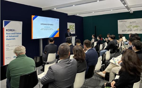 대표단은 10일 박람회 전시장 내 VIP 이벤트룸에서 첨단소재 분야 기업 관계자가 참석한 가운데 ‘경기경제자유구역(GGFEZ) 투자설명회’를 개최했다. 경기경제자유구역청은 설명회에서 산업 인프라와 입지 경쟁력, 첨단소재·반도체·수소 산업과 연계한 성장 전략을 소개했다. 코트라는 한국 첨단소재 정책방향과 투자유치 사례를 공유했으며, 한국탄소나노협회는 국내 탄소나노사업의 현황과 전망을 설명했고, ㈜한화첨단소재는 자사의 첨단소재 개발 현황 및 미래 전략을 제시했다. 이를 통해 참석자들은 한국의 첨단소재 산업 생태계와 매력적인 투자 환경을 한눈에 파악할 수 있었다.