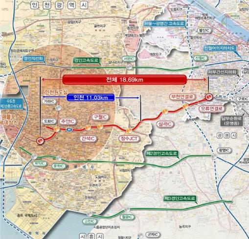 인천 미추홀구 용현동(인천대로)에서 장수IC와 부천을 거쳐 서울 구로구 오류동(오류IC)까지 연결되는 총연장 18.69㎞, 왕복 4~6차로의 소형차 전용도로로 건설될 예정이다.