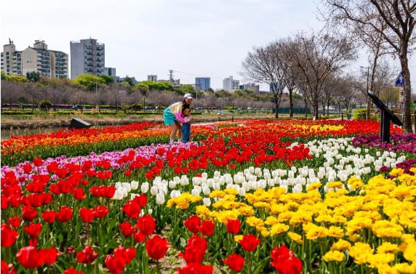 동대문구, 중랑천 사계정원에 튤립 활짝…봄 산책길 물들였다