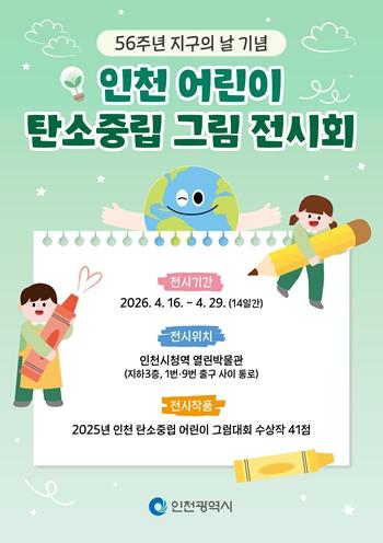 전시장에는 인천 지역 어린이들이 환경 보호와 지구의 미래를 주제로 그린 다양한 작품이 전시되며, 기후 변화, 탄소 저감, 자연 보호 등 다양한 메시지를 어린이들의 시선으로 담아내 관람객에게 새로운 공감과 인식을 전달할 것으로 기대된다.