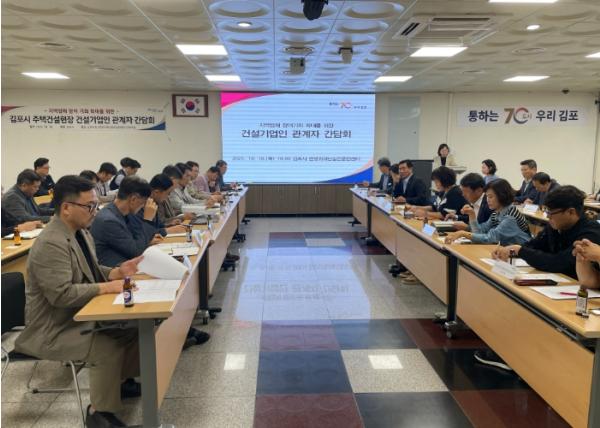 김포시가 주택건설현장 지역업체 참여기회 확대에 적극적으로 나서고 있다. 시는 지난 16일 건설기업인 관계자 간담회를 열고 관내 대규모 건설사업에 지역업체의 참여기회 확대에 나섰다.이번 간담회는 지