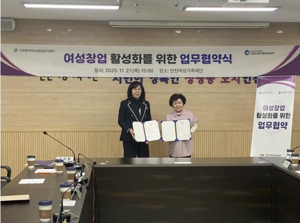 인천신용보증재단 인천소상공인종합지원센터와 인천여성가족재단 인천광역여성새로일하기센터는 '여성 창업 활성화를 위한 업무협약'을 체결했다고 27일 밝혔다. 이번 업무 협약식을 통해 양 기관은 인천 지