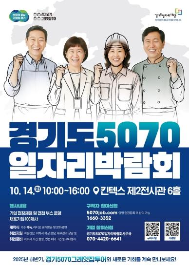 경기도와 경기도일자리재단은 오는 14일 고양 킨텍스에서 ‘경기도 5070 일자리 박람회’를 개최한다. 이번 박람회는 경기 북부권을 중심으로 열리며, 50~70대 중장년 구직자와 기업의 직접 연결을 통해 재