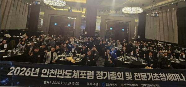 인천광역시는 지난 1월 30일 쉐라톤그랜드 인천호텔에서 ‘2026년 인천반도체포럼 정기총회 및 전문가 초청 세미나’를 개최했다고 밝혔다.인천반도체포럼은 반도체 기업, 대학, 연구소, 공공기관 간 상호