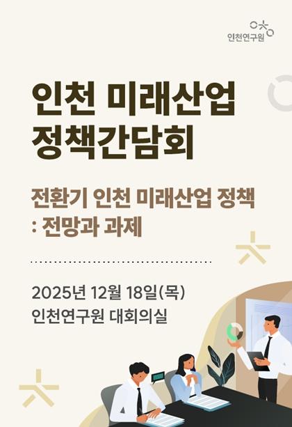인천연구원은 2025년 12월 18일 오전 10시, 인천연구원 대회의실에서 '인천 미래산업 정책간담회'를 개최한다. 이번 간담회는 최계운 원장 취임 이후 처음으로 열리는 공식 정책간담회로, 인천의 산업구조