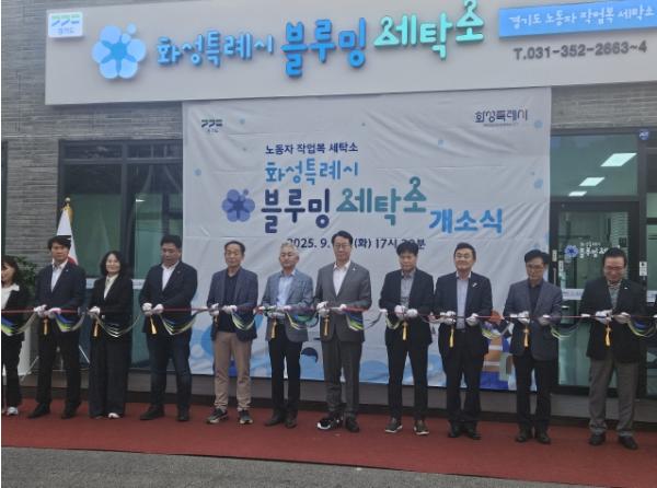 한 벌당 최대 2천 원에 영세·중소사업장 노동자의 작업복을 수거부터 세탁, 배송까지 원스톱 서비스로 지원하는 ‘블루밍 세탁소’ 4호점이 30일 화성시에 문을 열었다.화성시 향남읍 발안만세길 71에 개소