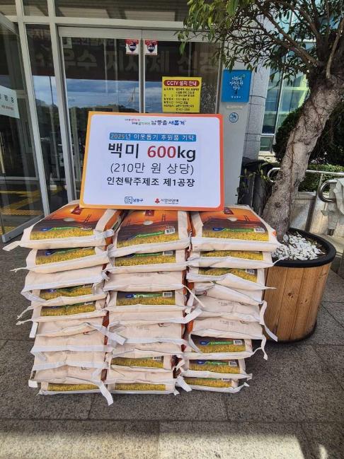 인천탁주제조 제1공장, 남동구에 이웃돕기 후원품 기탁