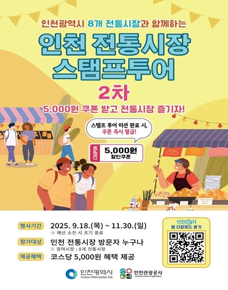인천광역시와 인천관광공사는 전통시장의 매력을 널리 알리고 지역 경제 활성화를 도모하기 위해 ‘매력으뜸 전통시장 육성사업’의 일환으로 오는 9월 18일부터 11월 30일까지 ‘2025년 제2차 인천 전통시