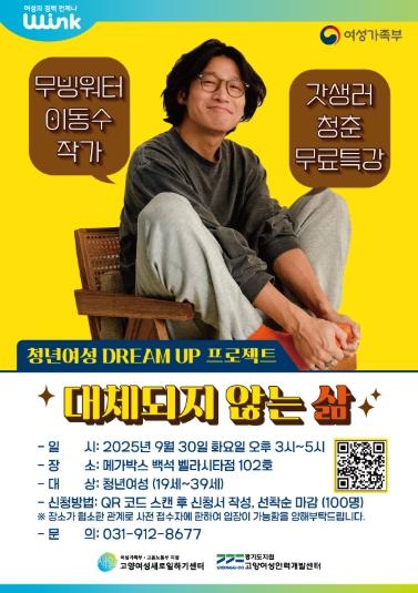 고양여성새로일하기센터·고양여성인력개발센터는 청년 여성들의 진로 설계와 자기 개발을 지원하고자 오는 30일 오후 3시, 메가박스 백석벨라시타점에서 청년 여성 대상 무료 특강을 개최한다.경력단절예방
