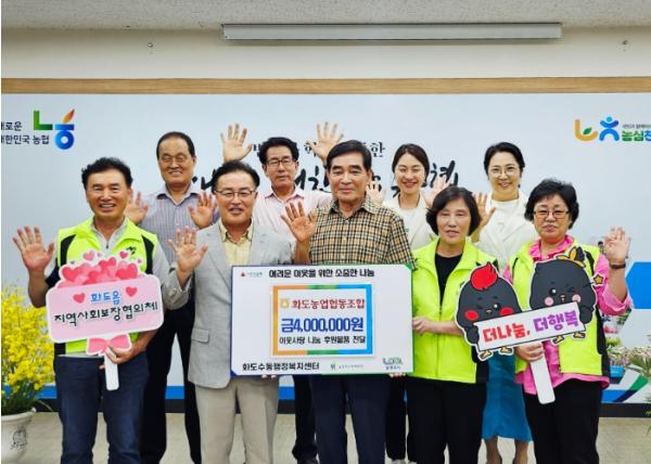 남양주시는 16일 화도읍 지역사회보장협의체가 추석명절을 맞아 화도농협으로부터 400만 원 상당의 물품을 기탁받았다고 밝혔다.이번 기부는 화도농협이 한가위를 맞아 지역 내 소외된 이웃에게 따뜻한 마음