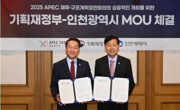인천광역시는 9월 11일 기획재정부와 ‘2025년 APEC 재무·구조개혁장관회의의 준비를 위한 업무협약(MOU)’을 체결했다고 밝혔다.이날 협약식은 정부서울청사에서 열렸으며 유정복 인천시장과 구윤철 부총리