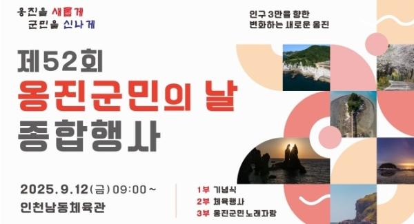 옹진군은 오는 12일에 인천 남동체육관에서 ‘제52회 옹진군민의 날 기념 종합행사’를 개최한다고 밝혔다. 옹진군민의 날은 1973년 제정된 이래 군민의 자긍심을 높이고, 화합과 단결을 다지는 대표적인 군