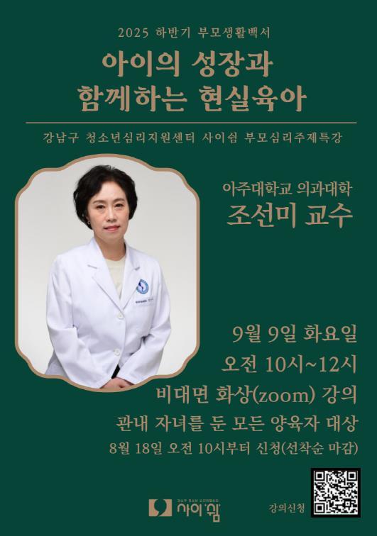 강남구, 현실육아 멘토 조선미 교수 온라인 특강 개최