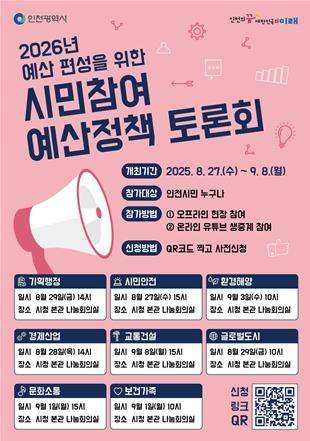 인천시, 2026년 예산편성 위해 시민참여 예산정책토론회 개최