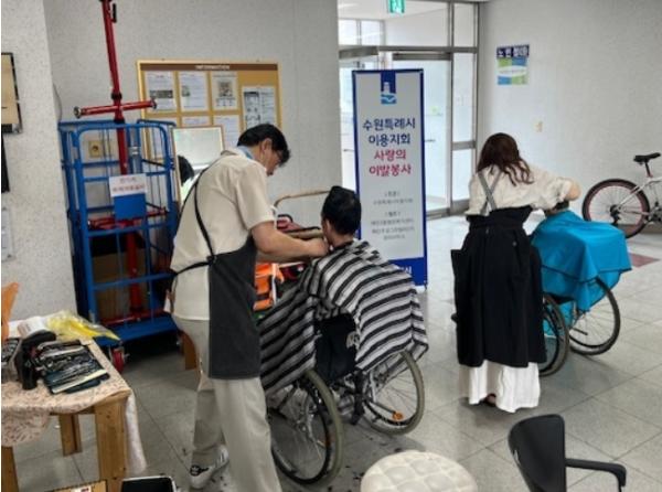 수원시 영통구 매탄3동은 지난 19일 주공6단지에서 지역사회를 위한 ‘시저스맨’ 사랑의 이발 봉사를 진행했다. 이번 봉사는 경제적 여건이나 신체적 제약으로 미용실 방문이 어려운 저소득 어르신과 장애