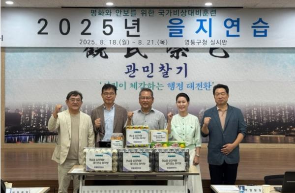수원시 영통구는 지난 19일 영통발전연대에서 준비한 격려물품을 전달하며, 수원시청과 영통구청에 마련된 을지 연습 상황실을 차례로 방문해 근무자들을 격려했다. 이번 방문은 국가비상사태에 대비해 실전