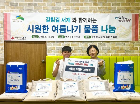 서울 은평구 역촌동은 지난 14일 신사동에 소재한 북카페 갈림길 서재와 광복절을 기념해 폭염에 취약한 이웃을 위한 ‘시원한 여름나기 물품’ 나눔 행사를 진행했다고 밝혔다.이번 행사는 갈림길 서재가