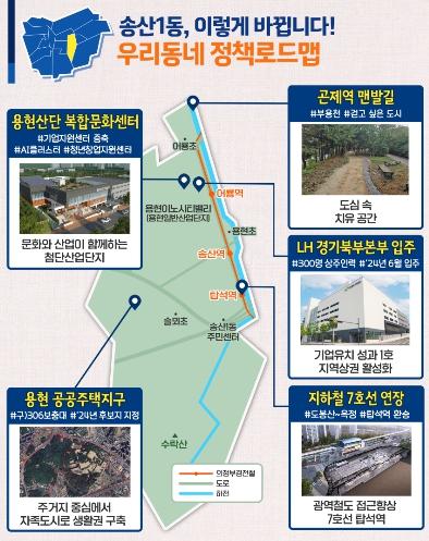 의정부시는 시민 생활과 밀접한 행정·인프라·복지·문화 등에 대한 정보를 지역 단위로 정리한 ‘우리동네 정책로드맵’ 송산1동편을 9일 발표했다. 송산1동, 용현산업단지 고도화로 산업·정주·생활혁신 본격