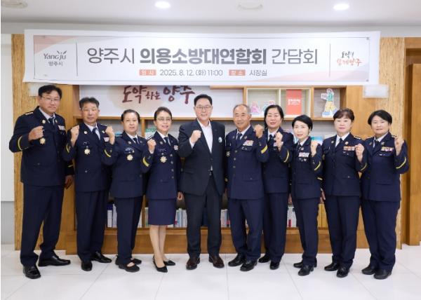 양주시는 12일 의용소방대연합회와 간담회를 열고 지역사회 안전망 강화 방안을 논의하는 시간을 가졌다.이번 간담회에는 반기남, 김선경 연합대장을 비롯한 10여 명의 지역대장이 참석했으며, 현장 활동 중
