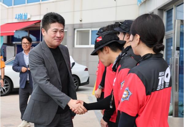 김정헌 인천 중구청장이 본격적인 여름 휴가철을 맞이해 지난 8일 하나개, 을왕리, 왕산 해수욕장을 찾아 물놀이 안전에 힘쓰고 있는 관계기관 근무자들을 격려하고 안전관리에 최선을 다해달라고 거듭 당부