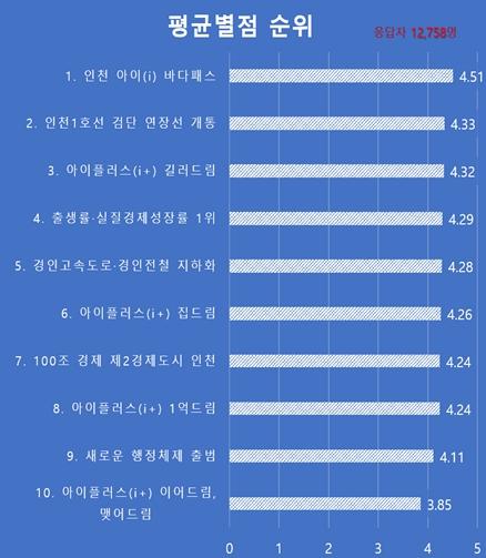 인천광역시가 취임 3년 차 주요 정책 성과에 대해 시민 의견을 수렴한 결과, 1,500원으로 인천 모든 섬을 방문할 수 있는 인천 아이(i) 바다패스 사업이 가장 높은 선호도를 얻은 것으로 나타났다.이번 조사