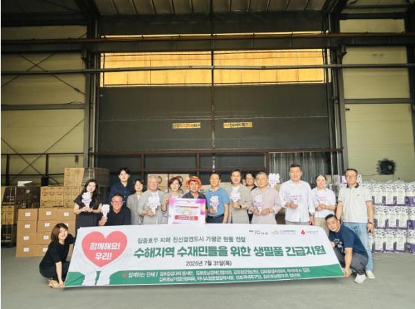 김포시와 김포복지재단은 최근 집중호우로 큰 피해를 입은 친선결연도시 가평군의 이재민들을 돕기 위해, 관내 기업체와 봉사단체들의 참여로 생활지원 물품을 모아 전달했다.이번 지원 물품은 호우피해로