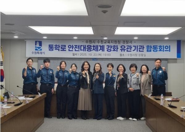 수원특례시는 23일 시청 상황실에서 경찰서, 수원교육지원청 등 유관기관과 회의를 열고, 통학로 안전대응체계 강화 방안을 논의했다. 이날 회의에는 임정완 수원시 시민협력교육국장, 수원교육지원청, 관내