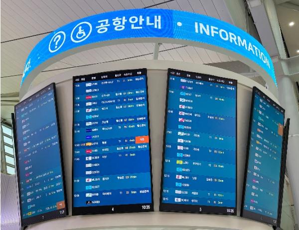 인천국제공항공사는 인천공항 출국장 상단 LED 전광판을 통해 실시간 ‘출국장별 예상소요시간 안내 서비스’를 개시했다고 1일 밝혔다. 이번에 도입한 서비스는 여객이 공항 여객터미널 내 출국장에 진입하