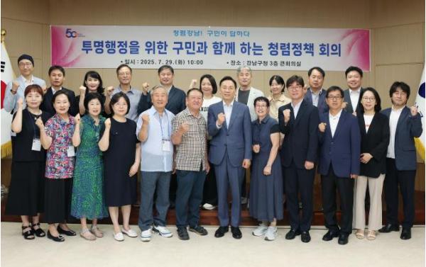 꿈이 모이는 도시, 미래를 그리는 강남구가 지난 7월 29일 구청 본관에서 구민감사관을 새롭게 위촉하고, 청렴한 행정 구현을 위한 민관 협치 기반을 강화했다. 이날 위촉식과 함께 열린 청렴정책 회의에서