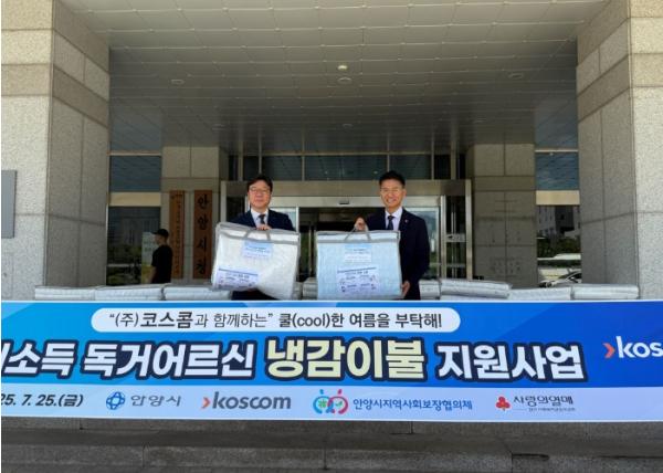 (주)코스콤은 안양시지역사회보장협의체와 연계하여 저소득 독거어르신을 위한 여름이불 110세트(총 1천만원 상당)를 안양시에 기탁했다.안양시는 25일 15시 부시장실에서 ㈜코스콤의 심무경 IT인프라사업본