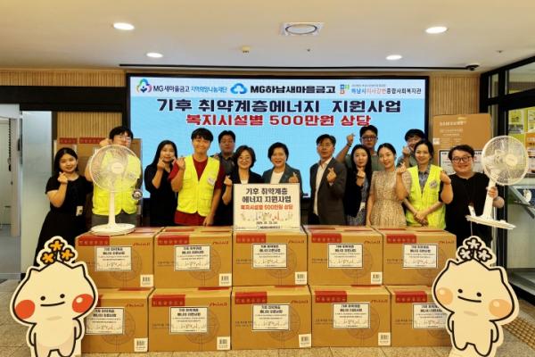 MG새마을금고 지역희망나눔재단(이사장 김인)은 무더위 속 취약계층의 건강한 여름나기를 지원하고자 하남시미사강변종합사회복지관(관장 조혜연)에 에어컨 및 선풍기를 전달했다. 이번 냉방기기 지원은 ‘