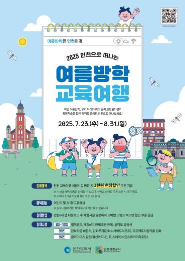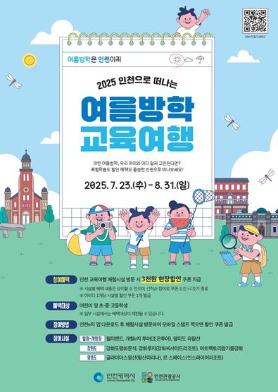 인천광역시와 인천관광공사는 여름방학을 맞아 7월 23일부터 8월 31일까지 청소년을 대상으로 ‘2025 인천으로 떠나는 여름방학 교육여행’ 이벤트를 진행한다고 밝혔다. 이번 이벤트는 여름방학을 맞아 인