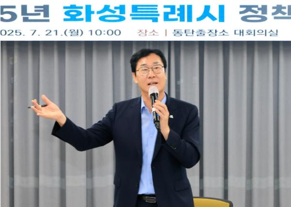 화성특례시가 21일 동탄출장소 대회의실에서 동탄권역 정책설명회를 열고, ‘2025년 정책설명회’의 시작을 알렸다.이번 정책설명회는 정명근 화성특례시장이 직접 시민을 찾아가 시정 방향을 공유하고 시민