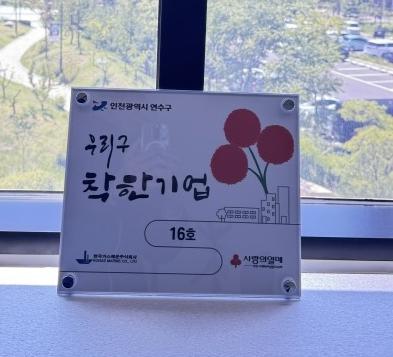 연수구는 지난 14일 한국가스해운㈜으로부터 2천910만 원을 기탁받고, ‘연수구 착한기업’ 16호점으로 선정해 현판을 전달했다. ‘착한기업’은 인천사회복지공동모금회에서 기업을 대상으로 하는 기부 프