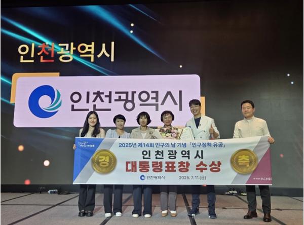 인천광역시는 보건복지부가 주최한 ‘2025년 제14회 인구의 날’ 기념행사에서 인구문제 대응에 기여한 공로를 인정받아 전국 광역지방자치단체 중 유일하게 대통령 기관 표창을 수상했다.‘인구의 날’ 유