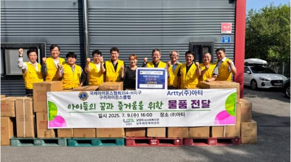 남양주시는 9일 ㈜아티(대표 김해진)와 국제라이온스협회354-H(경기북부)지구 구리라이온스클럽(회장 김백수)이 남부희망케어센터에 총 5,148점1,200만 원 상당의 문구 및 완구류를 기부했다고 밝혔다.이번
