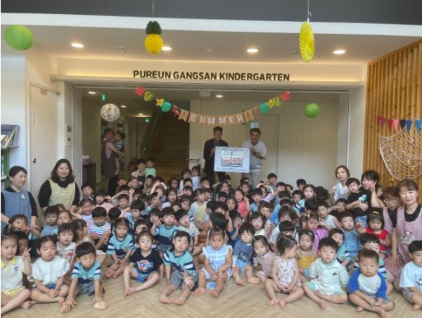 남양주시는 9일, 진접읍에 소재한 푸른강산어린이집(원장 박한별)이 나눔장터 통해 마련한 수익금 1,096,500원 전액을 북부희망케어센터에 전달했다고 밝혔다.이번 나눔장터는 유아들의 경제교육과 나눔 실