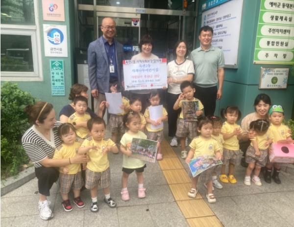 옥련2동 지역사회보장협의체(위원장 박인규·이병철)는 지난 3일 사과나무 어린이집으로부터 30여만 원의 이웃돕기 성금을 전달받았다. 이번 성금은 지난 23일 어린이집에서 열린 ‘장터놀이&플리마켓’ 행사