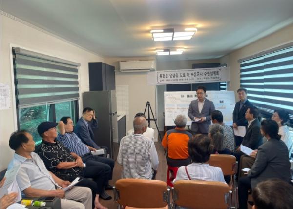 광주시는 8일 목현6통 마을회관에서 ‘목현동 용샘길 도로 확포장 공사 실시설계(안)’에 대한 주민설명회를 개최하고 사업 개요를 설명함과 동시에 주민 의견을 청취했다. 이번 사업은 총사업비 120억 원을