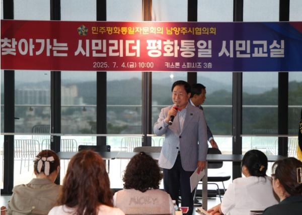 남양주시는 민주평화통일자문회의 남양주시협의회가 4일 금곡동 소재 카페에서 지역 시민 리더를 대상으로 연중 추진하고 있는 ‘제3차 찾아가는 평화통일 강연회’를 개최했다고 밝혔다.평화통일 강연회는