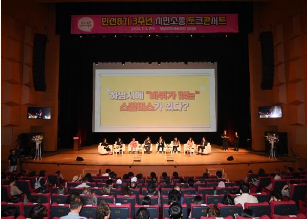 이현재 하남시장은 3일 하남문화예술회관 검단홀에서 열린 ‘민선 8기 3주년 토크콘서트’에서 “하남이 강남과 경쟁하려면 더 큰 도전이 필요하다”며 “지난 1,098일간 쉼 없이 달려온 발걸음을 바탕으로,
