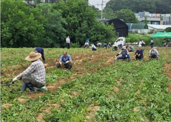 남양주시는 지난 26일 와부읍 농촌지도자회가 40여 명의 회원들이 공동으로 운영하는 도곡리 888 일원에서 감자(10kg) 100박스를 수확했다고 밝혔다.이날 수확한 감자는 지난 3월에 씨감자를 파종하고, 정성