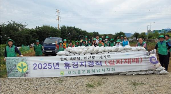 새마을운동 하남시지회는 24일 신송연 지회장을 비롯해 회원 150여명과 이현재 하남시장 등이 참여한 가운데 하남시 선동 일대 휴경지에서 사랑의 감자 수확 행사를 개최했다고 밝혔다. 이번 행사는 지난 3