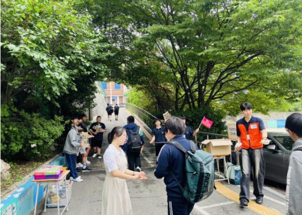 인천 중구청소년상담복지센터는 지난 17일 송도중학교를 방문해 또래상담자와 합동으로 학교폭력 예방을 위한 등굣길 응원 ‘친구 사랑 캠페인 - 친구야 응원해’를 운영했다. 이번 친구 사랑 캠페인은 학교