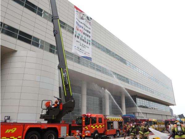 강남구, 무역센터서 전기차 화재 실전 훈련… 소방헬기·드론 총출동
