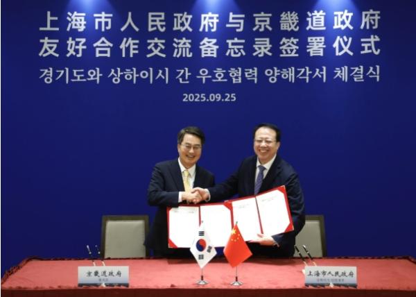 경기도가 ‘경제지평(地坪)’을 중국의 경제수도로 넓혔다.김동연 경기도지사는 25일 궁정(龚正) 상하이 시장을 만나 우호 협력 업무협약(MOU)을 체결했다.상하이(上海)는 지역내 총생산(GRDP)이 중국 1위(7