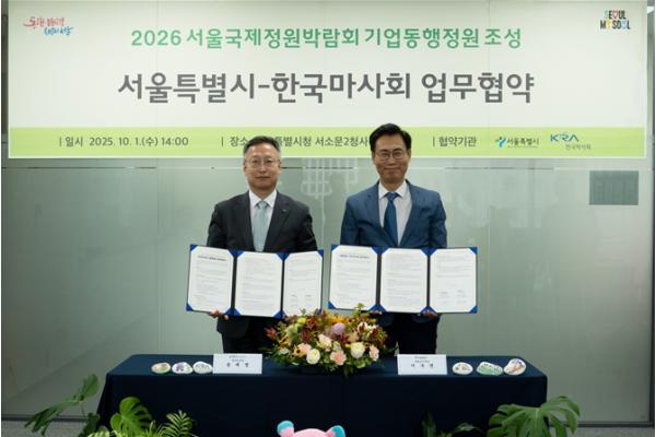 서울시는 2026년 서울숲에서 개최되는 서울국제정원박람회의 제1호 동행정원 조성을 위해 한국마사회와 업무협약을 체결했다고 밝혔다. 올해 보라매공원에서 진행중인 서울국제정원박람회에는 111개의 정원