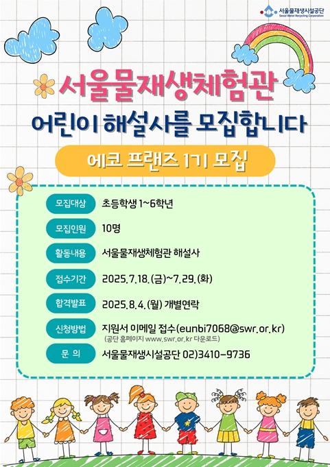 어린이 해설사를 찾습니다! 서울물재생체험관 '에코 프랜즈' 1기 모집